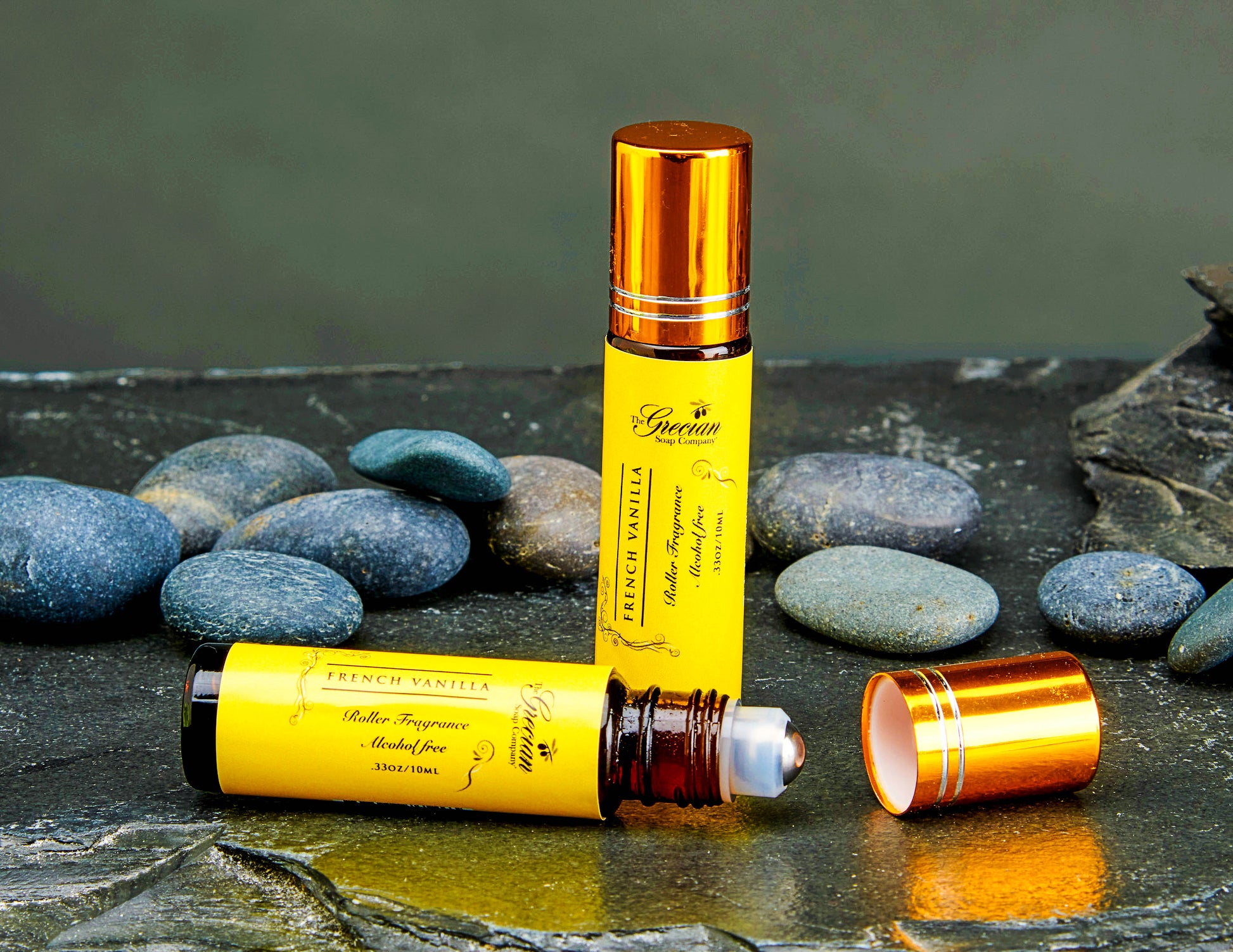 Discover our NEW roll-on perfumes, your ultimate on-the-go fragrance companion! Crafted by hand with all-natural ingredients, our Island Citrus, Kai, Lavender, Egyptian Musk, Orange Blossom and French Vanilla fragrances are meticulously blended with nourishing jojoba oil to moisturize your skin while imparting captivating scents.